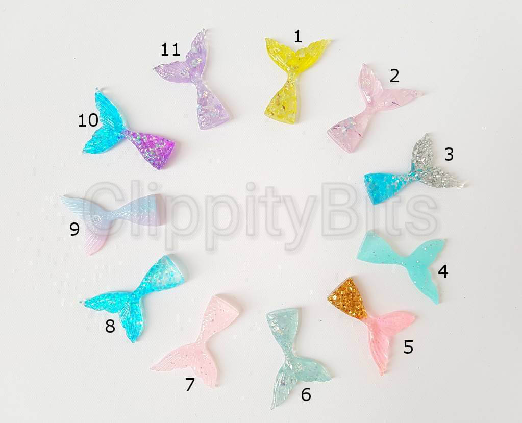 32x42mm Glitter Filled Mermaid Tails Resin Flatbacks